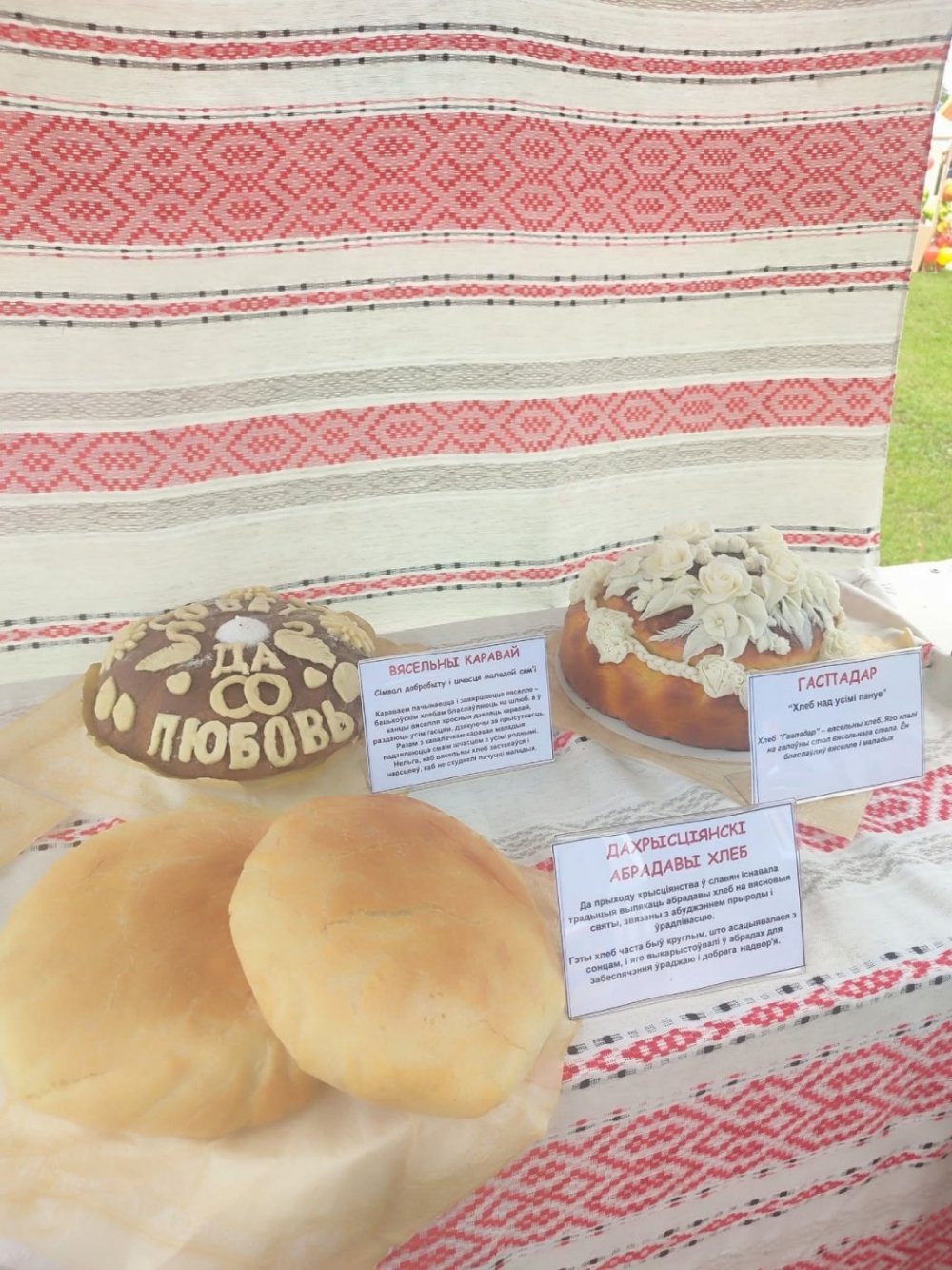 В минувшую субботу мы приняли участие в районных Дожинках в аг. Октябрь в качестве Музея хлеба. В экспозиции были представлены предметы из фондов нашего музея, рассказывающие об истории рождения хлеба на территории Беларуси. А ароматные экспонаты передали меценаты из сельских и городских учреждений культуры и образования. Караваи "Гаспадар", "Памінальны", "Прывітальны", "Вясельны", "Навасельны", хлеб "Першы", "Дахрысціянскі", Пасхальный "Артос", птички " Буськи", специально привезенный с Любанщины уникальный "Жораўскі хлеб", рецепт которого внесен в гос.список ИКН, а также символ жизни и надежды - "Блокадный хлеб" можно было увидеть на нашей локации. И конечно же немного интерактива - гости с удовольствием мололи пшеничную муку с помощью настоящих жерновов и угощались булочками с "хлебного дерева"